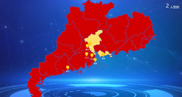 使用腾讯地图接口,个性化的全国地图精准到市镇,签到后显示对应地址弹出签到信息,支持个性化设置颜色文字大小背景图等