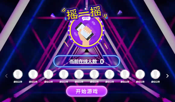 大屏支持视频背景+向上和横向版 进度条方式,手机端支持摇一摇! 前十名速度最快的显示摇的的过程 大屏幕10名的头像昵称都变动 几百人谁速度快就显示他1秒切换,最后可查询前100名成绩,手机也可以看