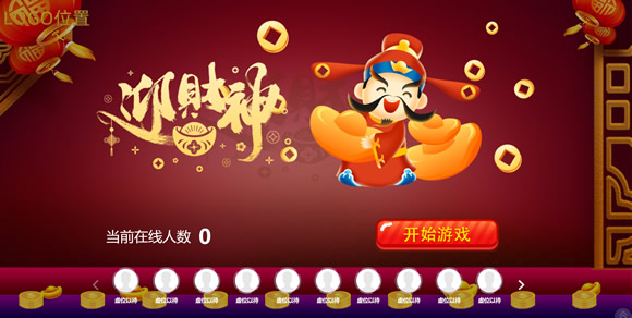 财神年会版画面,手机端点击掉落的金币,可以左右移动! 前十名速度最快的显示摇的的过程 大屏幕10名的头像昵称都变动 几百人谁速度快就显示他1秒切换,最后可查询前100名成绩,手机也可以看。
