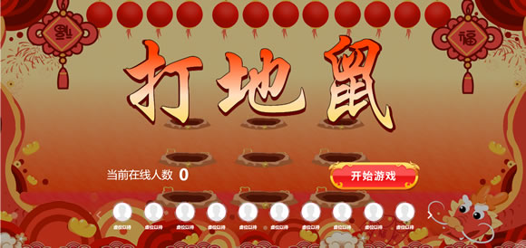 经典打地鼠,大屏扫码后,手机端点中小龙卡通的就获得积分,点中炸弹的减去积分,最后大屏显示成绩。